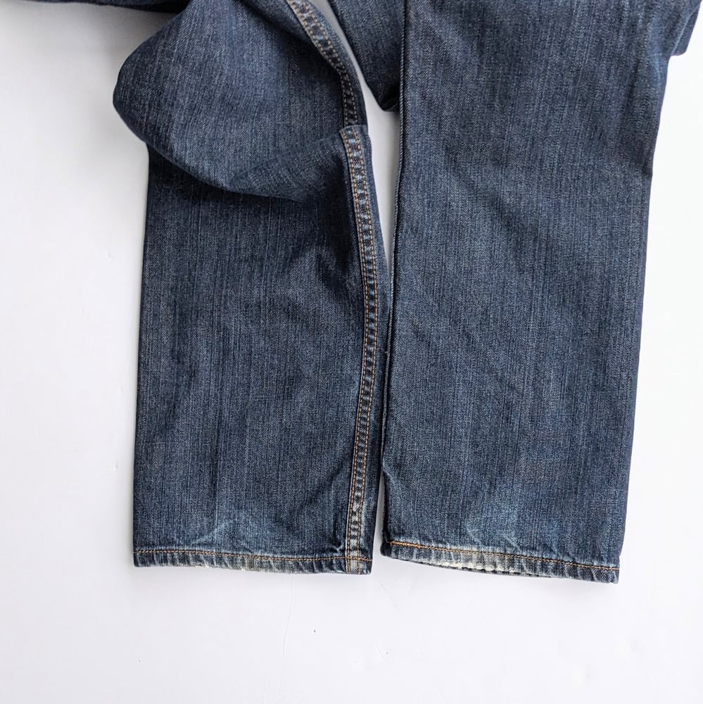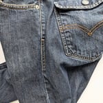 Levi's 514 Retro Men's Jeans in a dark wash blue color, featuring a straight leg style and a regular fit. Made of cotton denim, these jeans have a 7-pocket design with a coin pocket and a flap snap closure back pocket. Size of 30x32 with a 9 inch rise, these jeans are suitable for all seasons and have a classic blue color. The brand, Levi's, is known for its quality and durability, making these jeans a versatile wardrobe staple for any man.