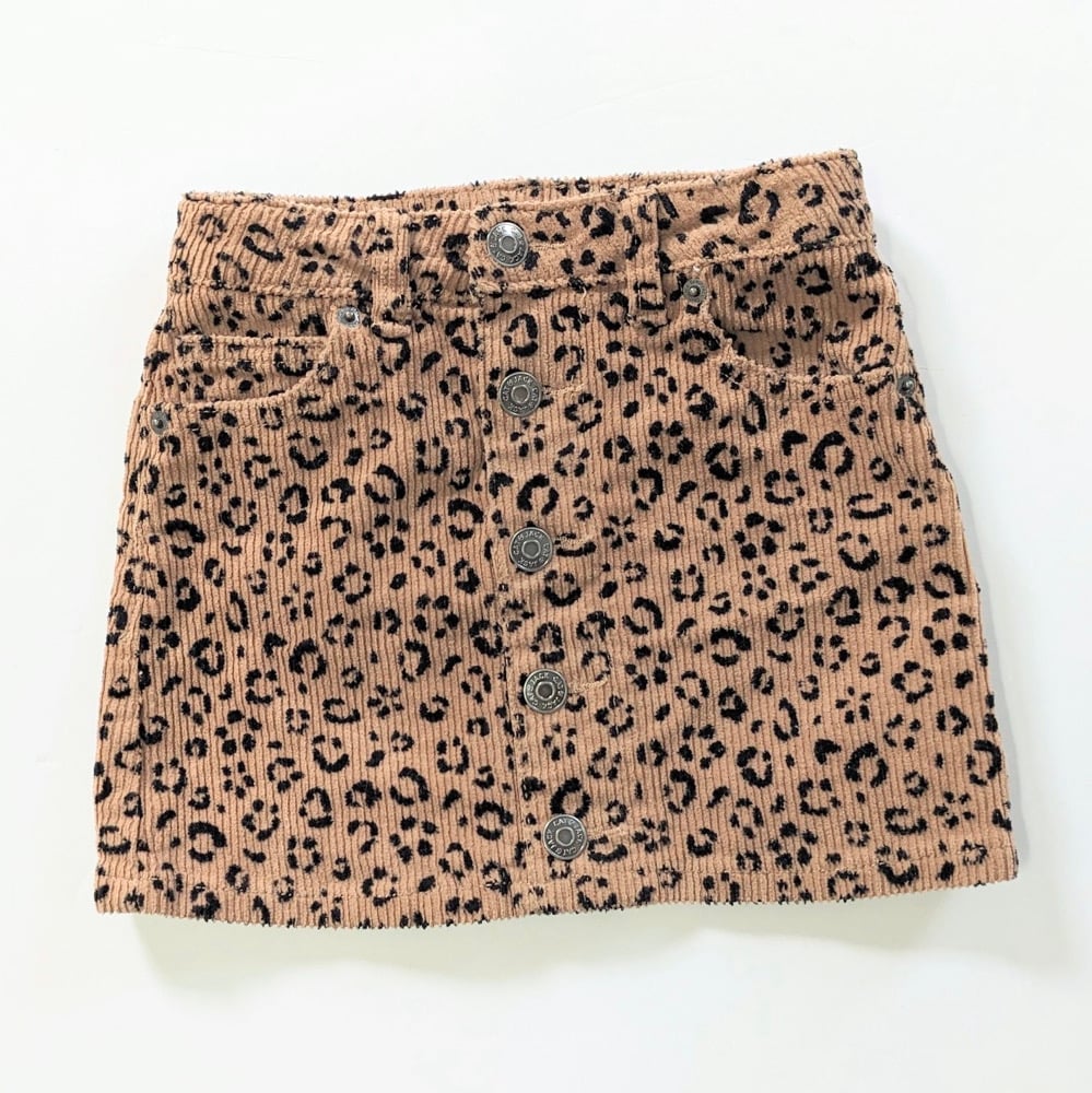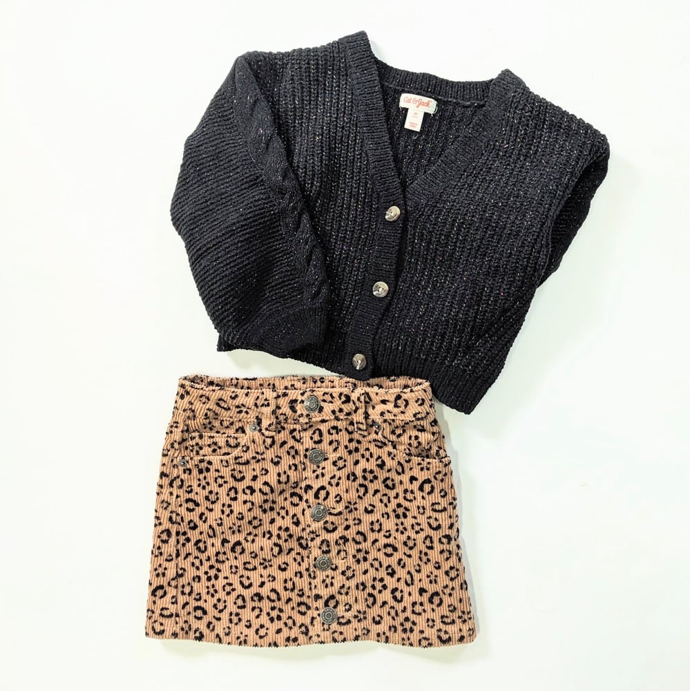 Cat & Jack girls size XS(4/5) Stylish 5 pockets, black & tan leopard print corduroy skirt with snap button front closure, belt loops and waist band adjustable. 96% Cotton/4% Spandex. Gently Loved. Excellent Condition! *Sweater not included!