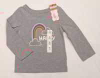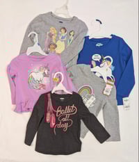 24M-3T Girls’ Toddler assorted brand graphic long sleeve t-shirts. Grey/dark grey, blue, lilac. New, Never Worn. Gently Loved, Like New.