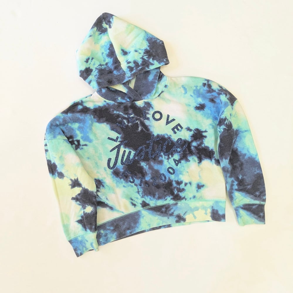 Justice Kids Blue and Green Tie-Dye Hoodie and Navy Sweatshirt Set
