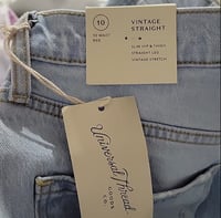 Universal Threads, size 10 Vintage Straight Leg Slim Hip, 30 waist regular jeans. New w/Tags. Length probably good for 5’2” or shorter unless you’re looking for ankle length.